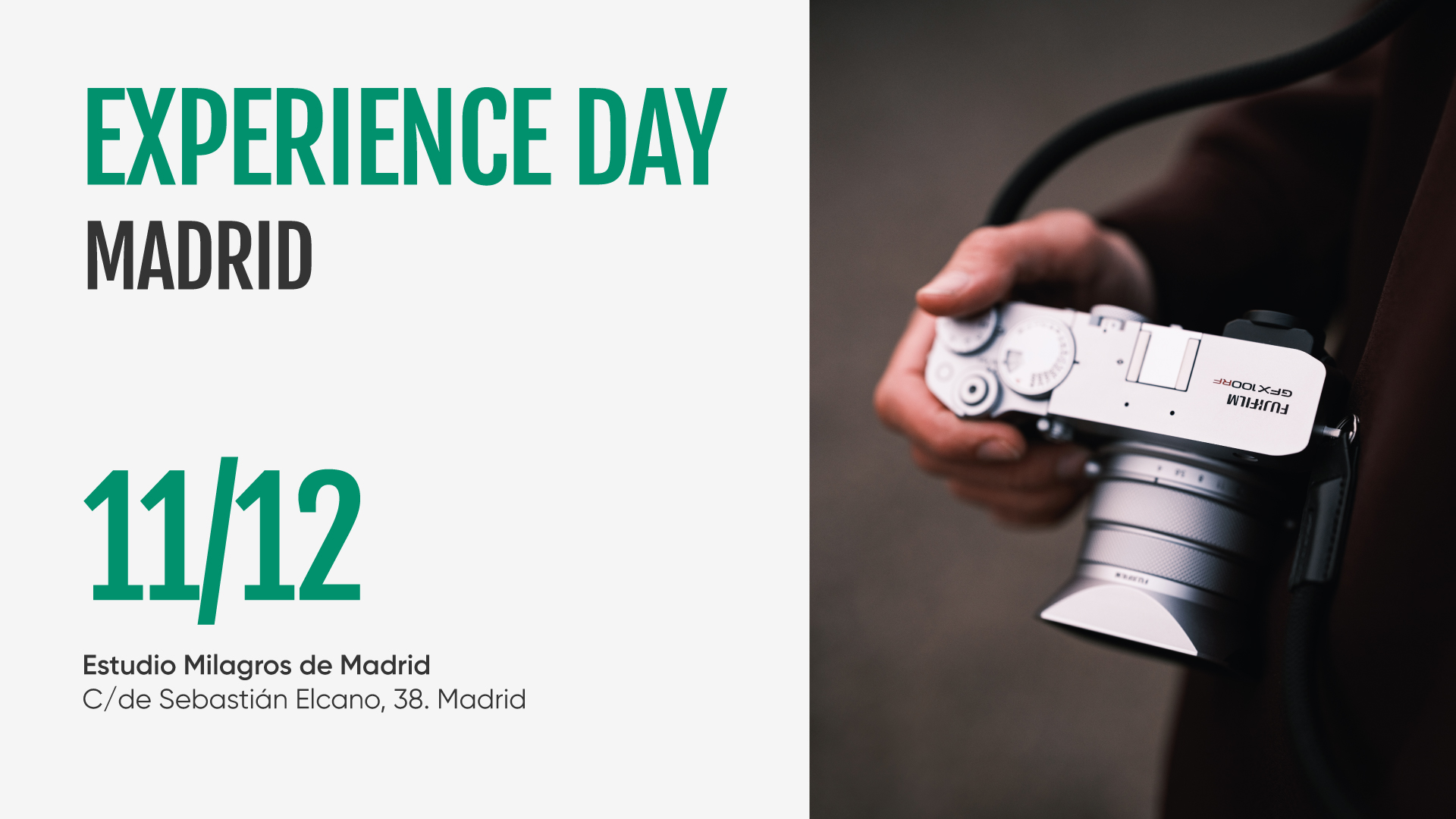11 diciembre, 2025 (16:00 - 18:00)AgendaExperience Day Madrid - Salida fotográfica con Joan VendrellEl próximo 11 de diciembre, Estudio Milagros de Madrid abrirá sus puertas para celebrar un EXPERIENCE DAY, una jornada pensada para descubrir, probar y experimentar de primera mano las últimas novedades de la marca.