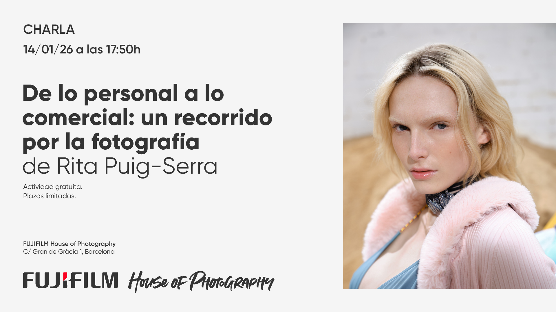 Valor del taller: 100€ / Esponsorizado por Fujifilm: 19.90€