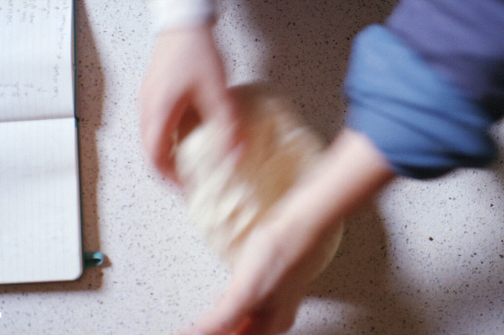 Con mi amiga Marion decidimos poner en práctica esto el pasado domingo: ella con la cámara en las manos y yo con las manos en la masa. Las dos, autoras del recuerdo. Usamos un carrete Fujifilm X‑TRA Superia 400 y un Fujifilm Neopan Acros 100 II.