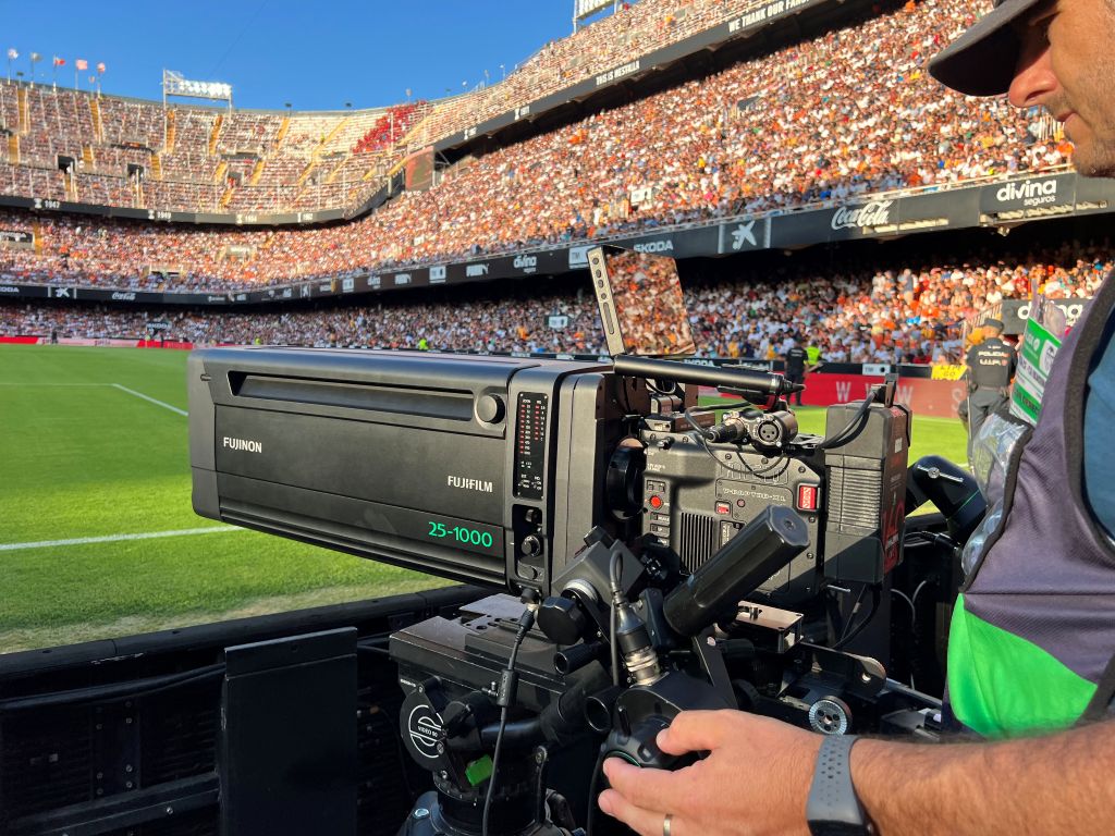 21 octubre, 2025Dispositivos ópticosÓpticas Fujinon: la mirada cinematográfica que está revolucionando las retransmisiones deportivasEl operador de Steadicam Manu Tomás (Mediapro) explica cómo la incorporación de las ópticas Fujinon de gran formato está transformando la forma en que los aficionados viven el fútbol en directo.En la retransmisión deportiva, cada detalle cuenta. Los estadios vibran, las jugadas se suceden a gran velocidad y la exigencia técnica es máxima. En este contexto, las ópticas Fujinon de Fujifilm, como la FUJINON DUVO 25-1000mm, han demostrado ser un elemento diferencial al aportar un look cinematográfico único en las producciones en vivo de fútbol para cambiar la manera de ver el deporte.